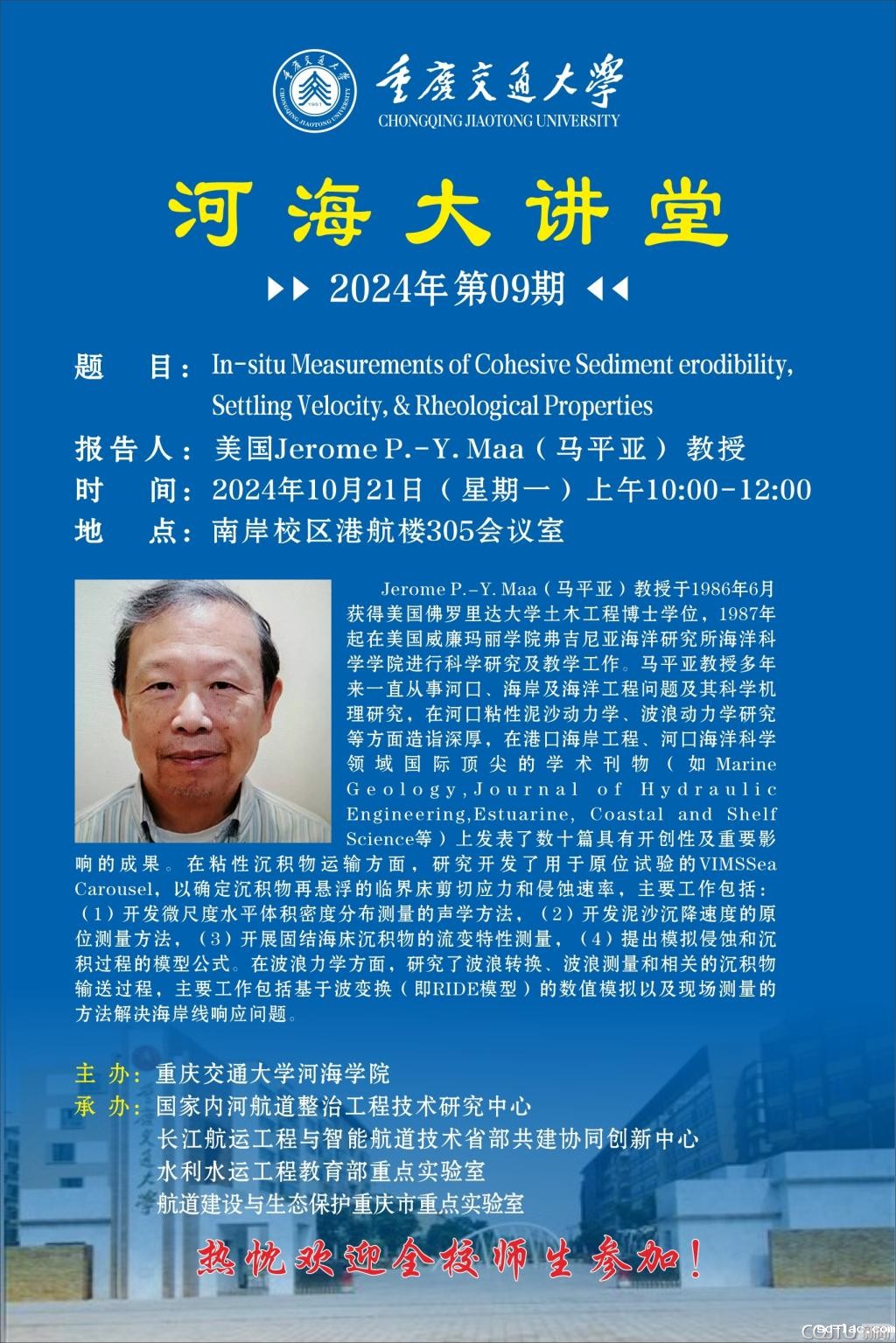 河海大讲堂:In-situ Measurements of Cohesive Sediment erodibility, Settling Velocity, & Rheological Properties