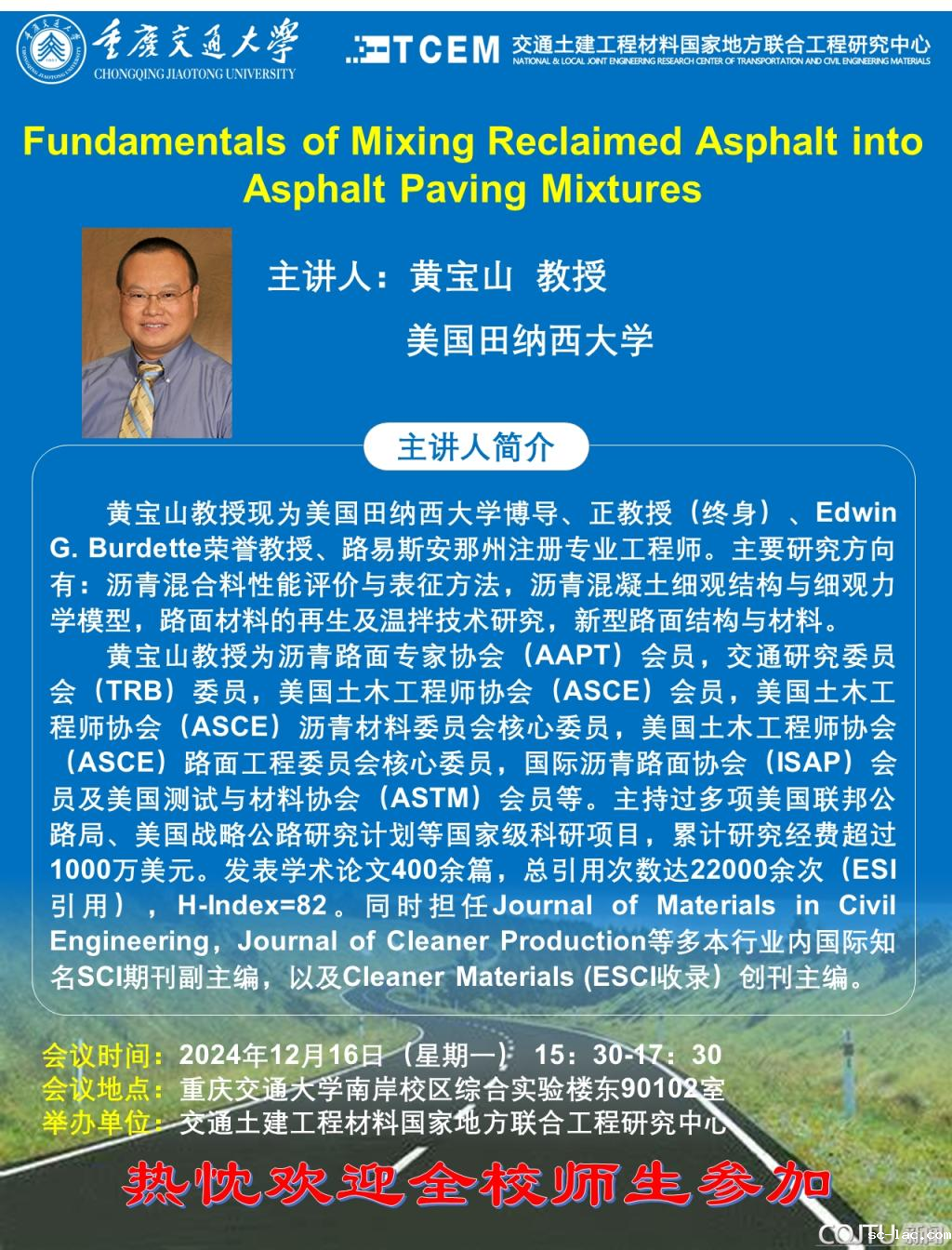 日期:2024年12月16日 10:42 作者:交通土建工程材料国家地方联合工程研究中心 来源:交通土建工程材料国家地方联合工程研究中心 点击率: