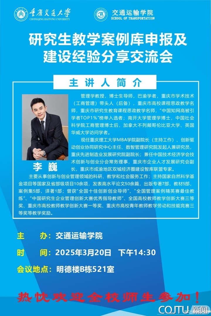 日期:2025年03月17日 21:20 作者:交通运输学院 来源:交通运输学院 点击率: