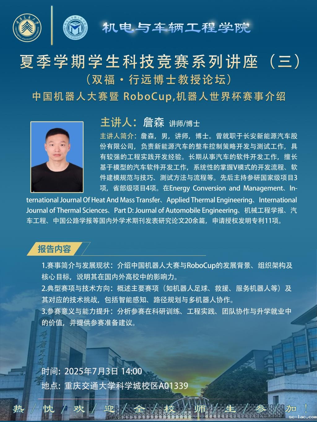 机电与车辆工程学院夏季学期学生科技竞赛系列讲座(二):中国国际大学...