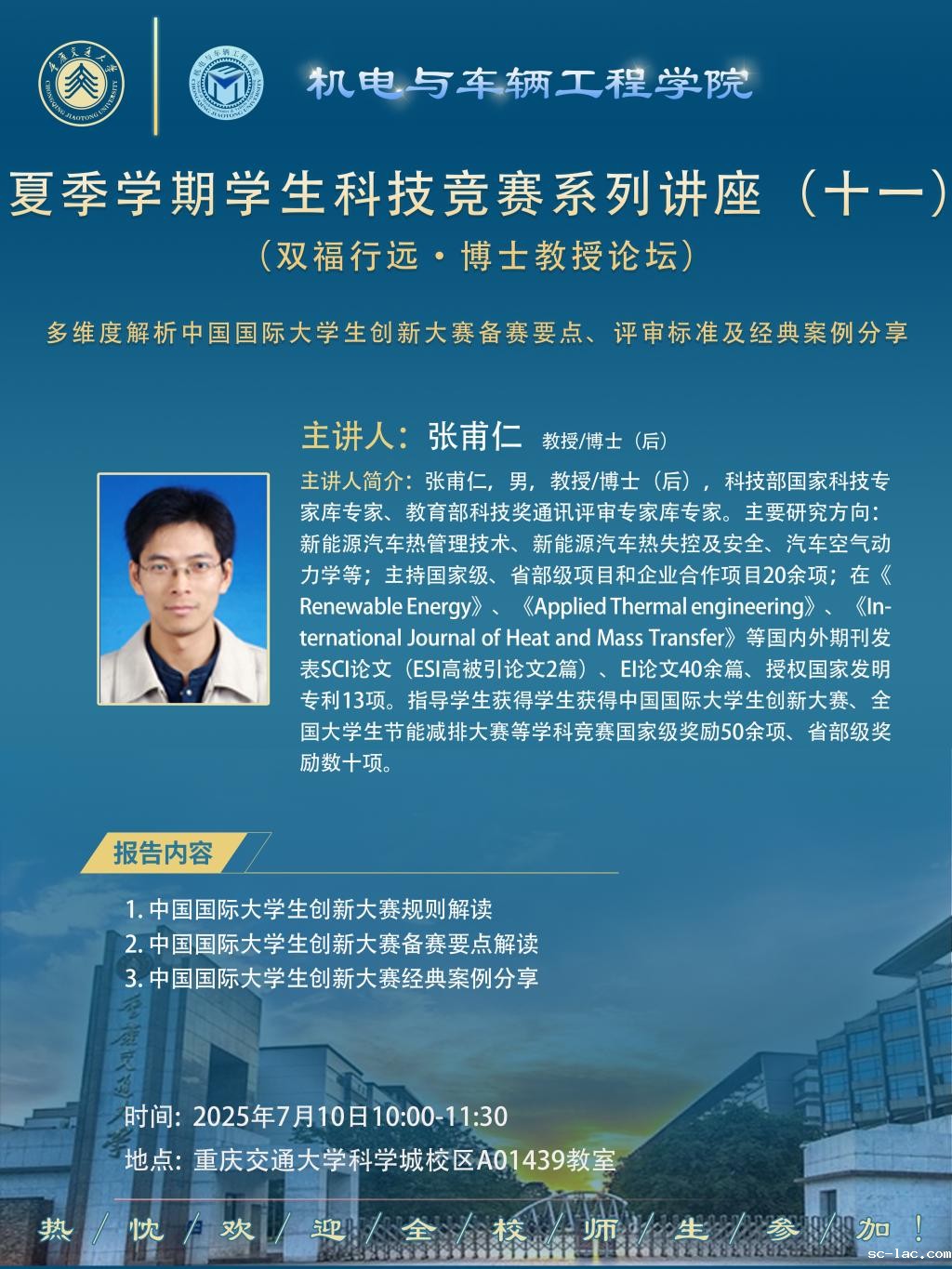机电与车辆工程学院夏季学期学生科技竞赛系列讲座(十一):多维度解析中国国际大学生创新大赛备赛要点、评审标准及经典案例分享