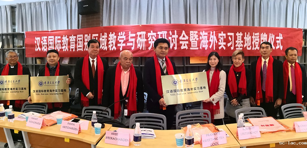 2019年1月15日下午,汉语国际教育国别区域(泰国)教学与研究研讨会暨海外实习基地授牌仪式在人文学院10414会议室举行。泰国校长团成员、国际处和人文学院领导及全体汉语教师参加会议。院长张玉蓉主持会议。