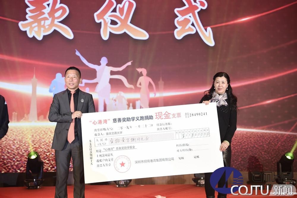 1月22日晚,招港集团举行了“2019年‘心港湾·筑未来’年会晚会。晚会上,刘裕董事长将慈善义跑“老伟德网上娱乐团队”筹得的11.8万善款捐赠给我校,苗金燕处长代表学校接受捐赠。该基金将统一汇入“人才工程奖学基金”资金池中,用于奖励我校优秀学子。我校于2016年11月成立基金会之时,招港集团一次性捐赠100万元在我校设立“心· 港湾人才工程奖学基金”。