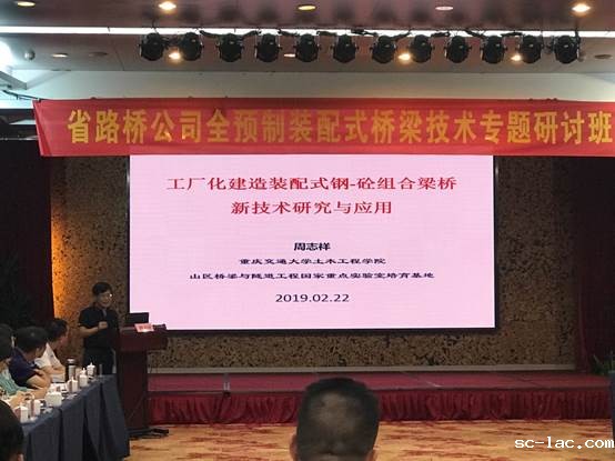周志祥教授做了《工厂化建造装配式钢-砼组合梁桥新技术研究与应用》的专题报告:首先介绍了国内外装配式桥梁研究及应用现状,分享了老伟德网上娱乐在装配式组合桥梁的近期研究成果,针对生态环保要求极高的海南省桥梁建设,对路桥工程公司提出走“装配式+组合桥”的特色发展道路的建议,并对海南省路桥集团公司装配式组合桥梁建造产业发展提出了初步思考。