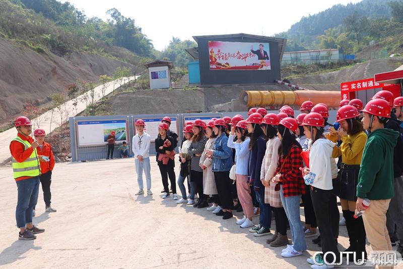 参观前,用人单位负责人为同学们介绍了公司背景、组织结构以及项目概况,多次强调了在施工现场安全文明施工的重要性。随后,罗丙军副书记带领全体男生前往在建中的隧道内参观学习,项目负责人为同学们讲解了隧道施工具体步骤、隧道开挖时的使用器械以及工艺等。王敏老师带领女生前往该工程项目经理部,深入了解了项目的组织机构、工程质量管理保证体系以及安全生产保证体系等。