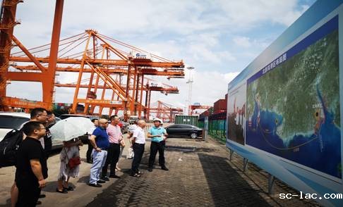 随后,黄承锋副校长一行来到了钦州保税港区行政大楼一楼沙盘以及国际集装箱码头,详细了解钦州保税港区建设发展、产业规划布局、运营情况及北部湾港规划建设情况。