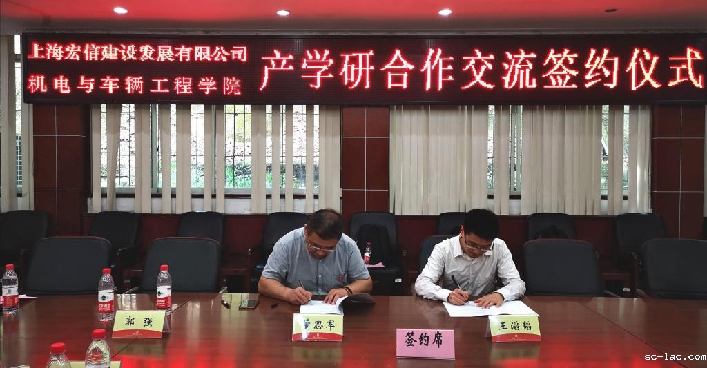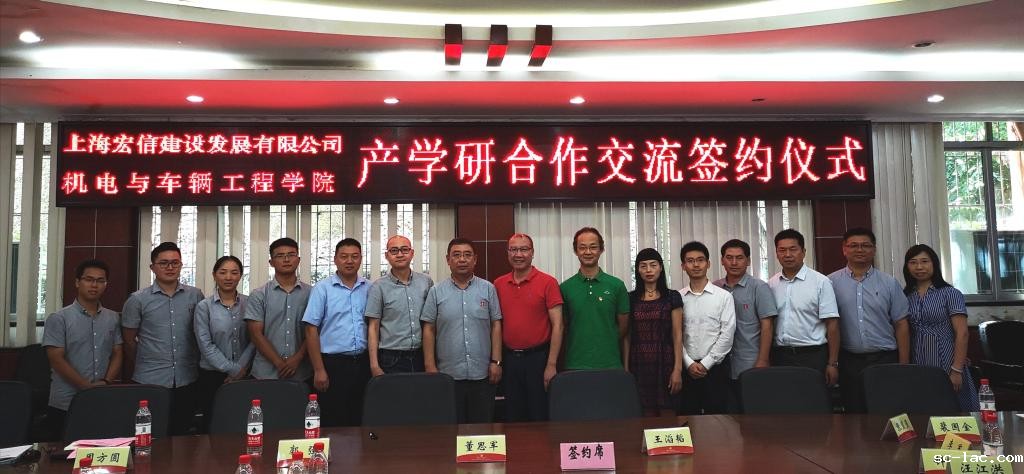 2019年9月11日上午,机电学院与上海宏信建设发展有限公司在机电学院会议室签署了产学研合作及实习基地建设协议。机电学院领导、教研室主任及上海宏信建设发展有限公司董思军副总经理等公司方8名代表参加了签约仪式。