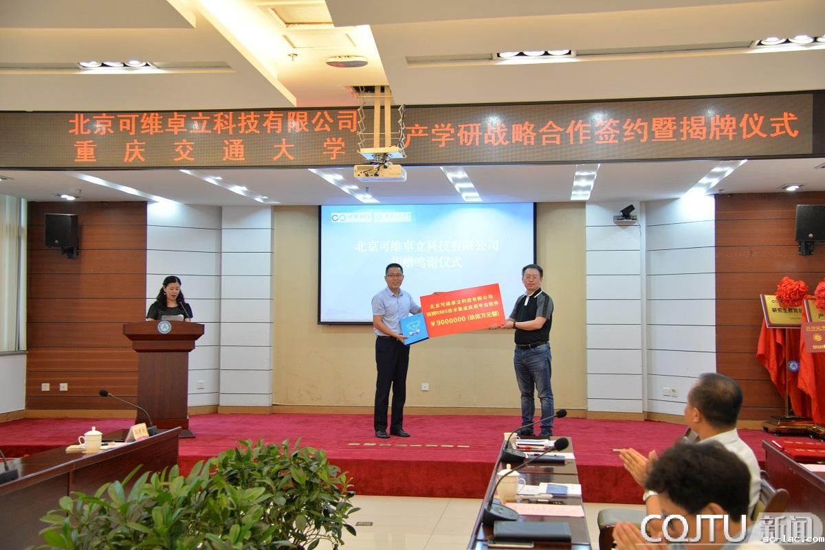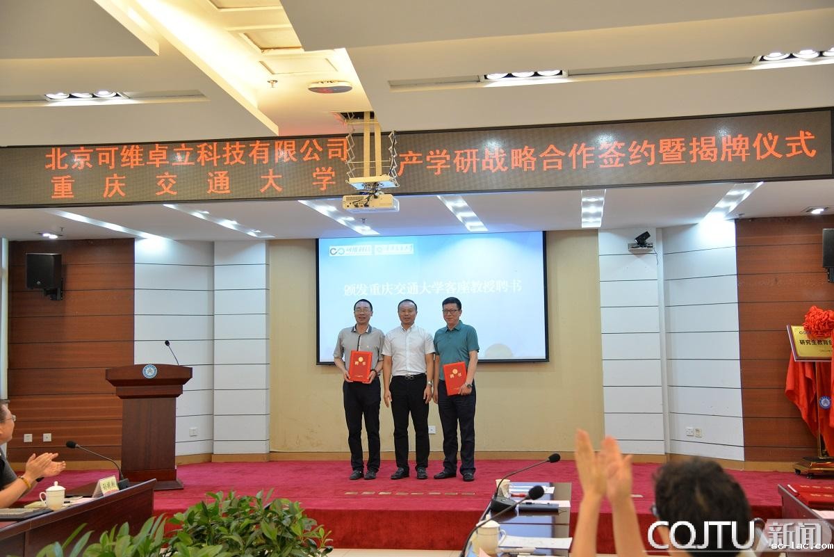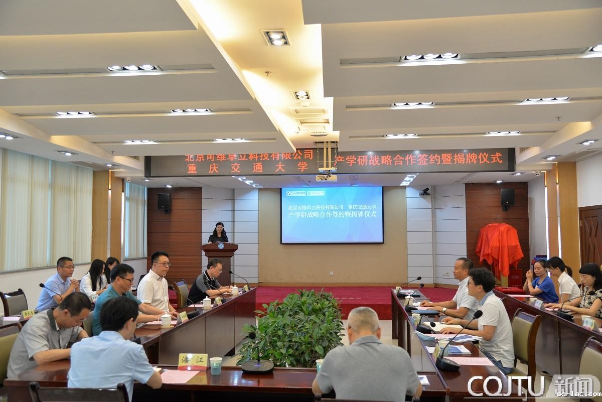 7月16日上午,北京可维卓立科技有限公司-老伟德网上娱乐产学研战略合作签约暨揭牌仪式在老伟德网上娱乐南岸校区明德楼208会议室举行。北京可维卓立科技有限公司董事长卓玲佳、常务副总经理唐环、副总经理孙振翔、邵红威,学校副校长周建庭,产学研合作处、研究生院、科技处、交通运输学院、信息科学与工程学院、机电车辆与工程学院、航空学院、经济与管理学院、数学与统计学院负责人出席会议。产学研合作处处长苗金燕主持会议。