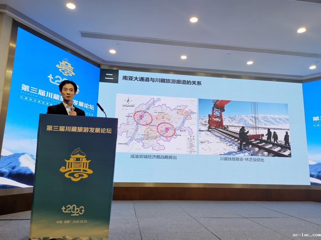 论坛上,我校人文学院宋波博士以《南亚大通道背景下川藏旅游廊道交旅融合研究》为题进行了主题演讲,在梳理南亚大通道建设背景、其与川藏旅游廊道构建关系的基础上,提出了建设景观廊道、全域廊道、智慧廊道、生态廊道的交旅融合思路,赢得了与会嘉宾的一致赞誉。