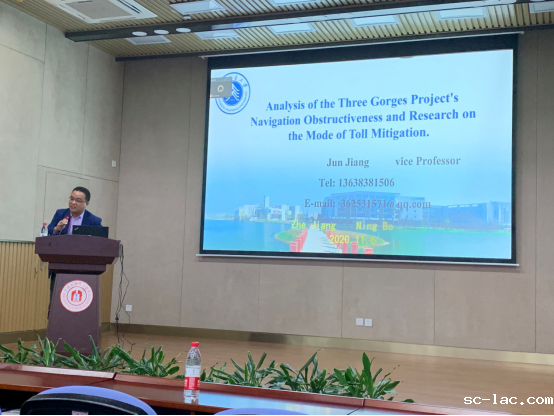 本次大会共分设了“港航物流体系建设”、“信息技术的高级应用”、“世界新格局下国际运输与产业经济的变化”、“绿色智慧港航体系建设”、“短途海运与航行安全”和“长江经济带的贸易运输体系建设”等6大专题论坛。我校交通运输学院交通管理系主任蒋军老师在“港航物流体系建设”分论坛上做了“Analysis of the Three Gorges Project's Navigation Obstructiveness and Research on the Mode of Toll Mitigation”的学术报告,引起了国内外专家学者对三峡枢纽碍航的极大关注,报告受到与会专家学者的充分肯定。