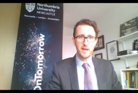 英国诺森比亚大学Jon Reast副校长首先发表视频致辞,对2020级新同学加入交通大学和诺森比亚大学表示了热烈欢迎,同时回顾了老伟德网上娱乐与诺森比亚大学的合作历程,以及英国诺森比亚大学的历史和发展现状。