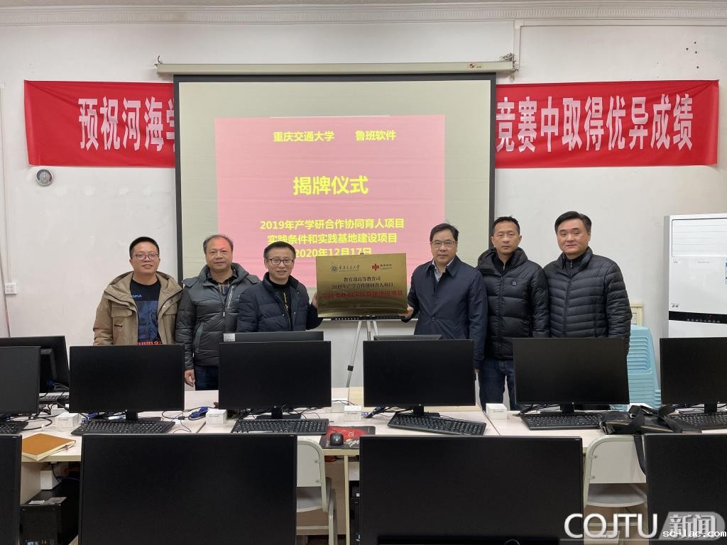 12月17日,2019年产学研合作协同育人项目-实践条件和实践基地建设项目揭牌仪式在我校河海学院仿真实验室举行,河海学院书记王多银教授、副院长郑丹教授、仿真实验室主任蔡创教授、制图教学部邱珍锋副教授以及重庆浩元软件有限公司鲁班软件代表杨先华总经理和刘强总经理出席了本次揭牌仪式和项目合作洽谈会。