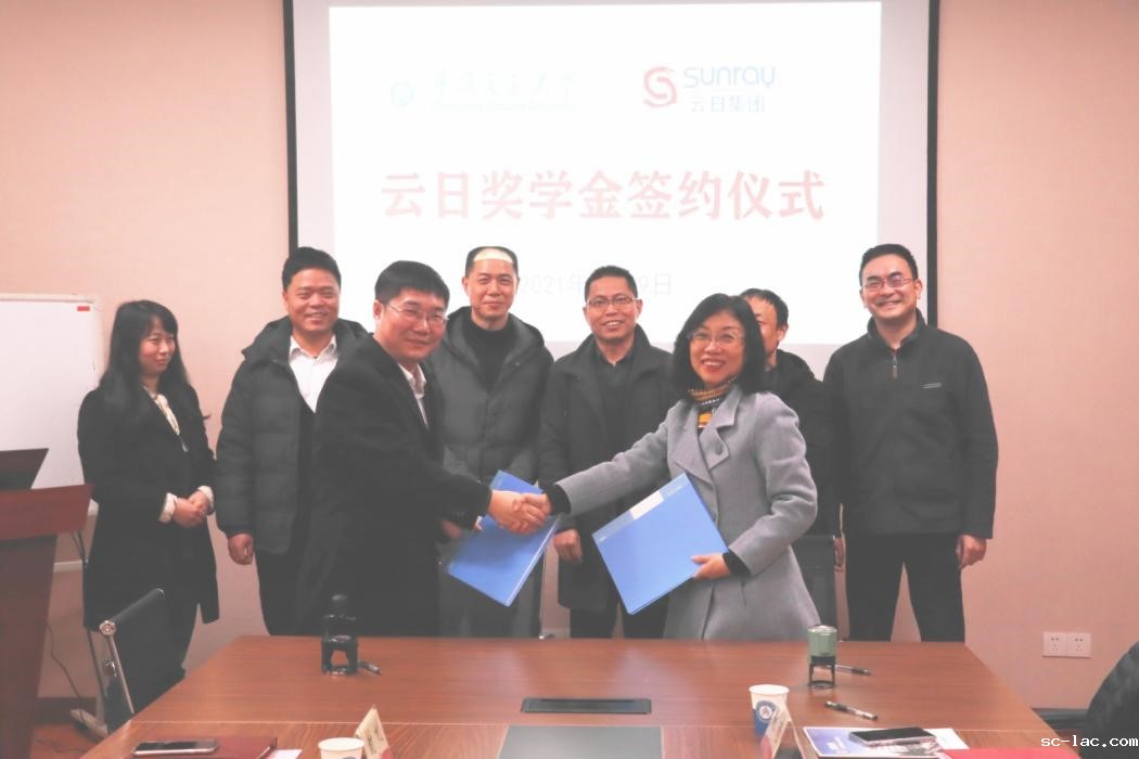 与会人员围绕校企交流互动、人才共育、平台共建、科技攻关等方面进行了深入交流。最后,校企双方进行了“云日奖学金”签约仪式。