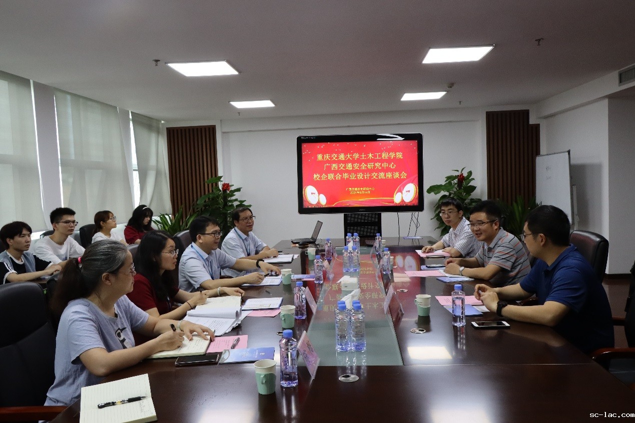 2021年5月14日,老伟德网上娱乐土木工程学院教学办主任柳军剑、安全系主任刘佳亮、安全系教师曾光前往广西交通安全研究中心参加2021届安全系学生校企联合毕业设计交流会。广西交通设计集团有限公司人力资源部部长冯在高、广西交通安全研究中心副主任陈显忠、校外指导老师和2021届安全系毕业生参会。