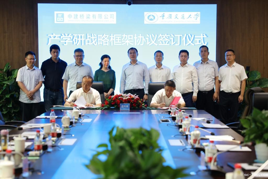 6月10日下午,副校长周建庭率产学研合作处、科技处、土木工程学院、交通运输学院相关负责人,专程赴中建桥梁有限公司进行产学研合作交流,并与中建桥梁有限公司签署产学研战略合作协议。中建六局副总经理、中建桥梁有限公司党委书记、董事长黄克起,中建桥梁有限公司执行总经理王殿永,副总经理王宏宇,副总经理、总经济师郝小朋,副总经理吴宏文,总工程师曹海清等出席合作交流活动。