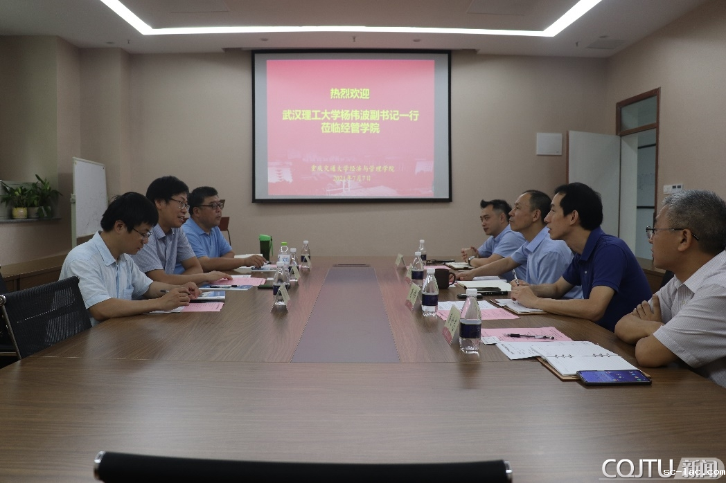 2021年7月7日上午,武汉理工大学管理学院党委副书记杨伟波、教授张骏、财务与会计系副主任闵剑一行来我校经管学院调研交流。经管学院党委副书记张庆民、副院长肖伟、教授李豪、教学办主任易世志等参加调研。
