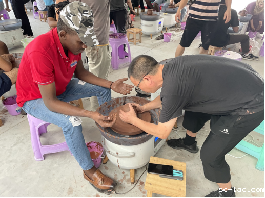 第二天,留学生们来到荣昌安陶小镇,聆听了非遗传承人讲述荣昌陶的故事。荣昌陶与江苏宜兴紫砂陶、广西钦州坭兴陶、云南建水陶并称“中国四大名陶”,有800多年的生产历史,被列为国家级非物质文化遗产。在陶艺体验中心,同学们还实际动手参与陶艺制作。