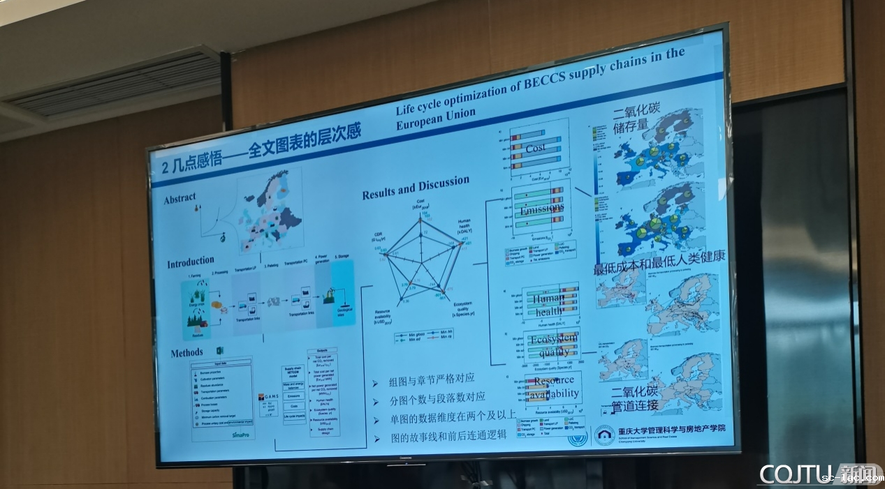 联合学术交流组会的第二阶段是两个课题组分别介绍正在进行的研究项目。首先由重庆大学蔡伟光教授课题组研一同学进行文献图表收集的交流与分享,通过对高水平期刊的分析,介绍了论文中常用的图表类型和研究结果呈现方法,并通过国外高校碳排放研究进行了实例展示。