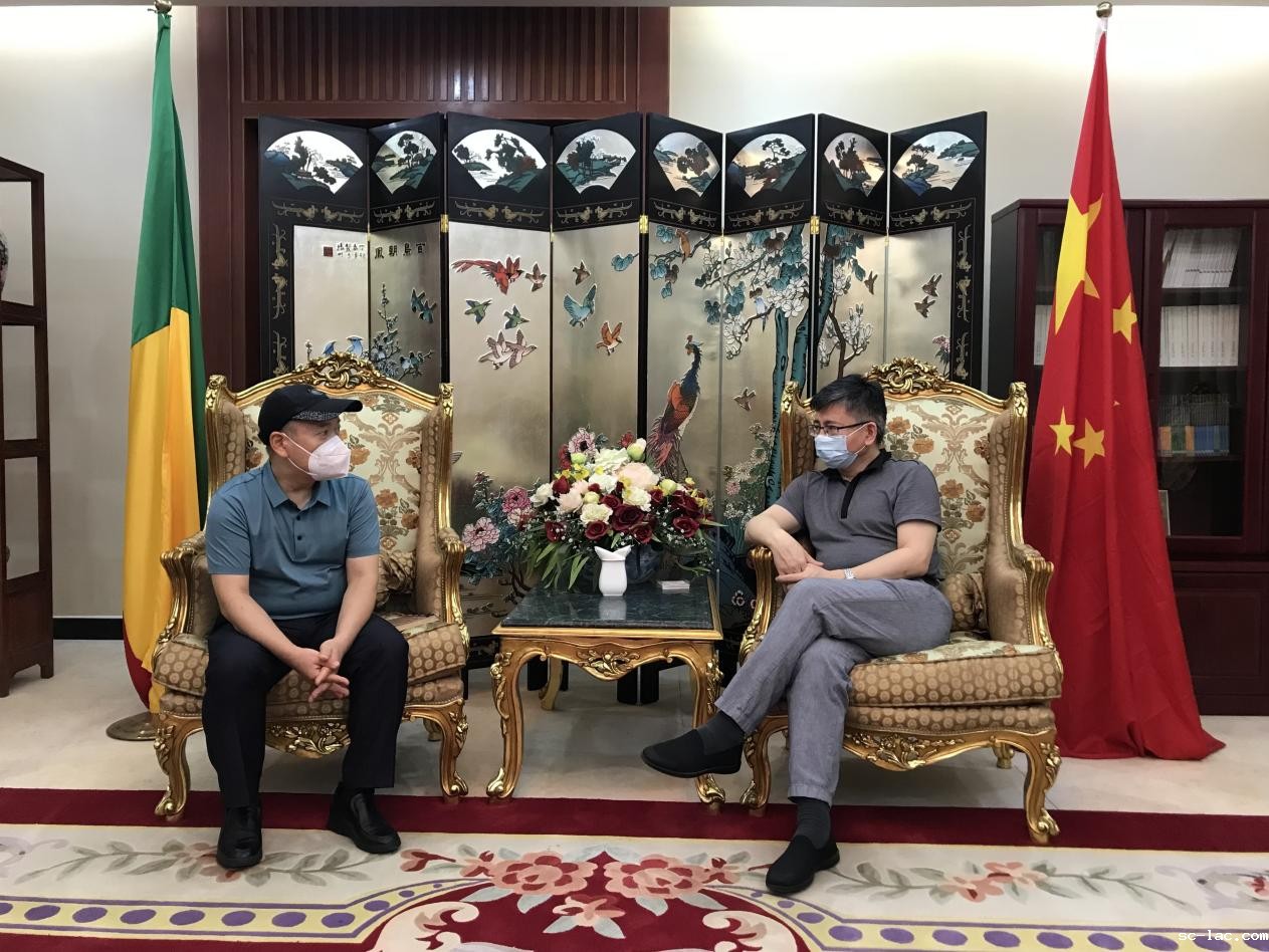 2021年11月,彭惊涛大使在中国驻贝宁大使馆会见了我校孔子学院新任院长赵华修。