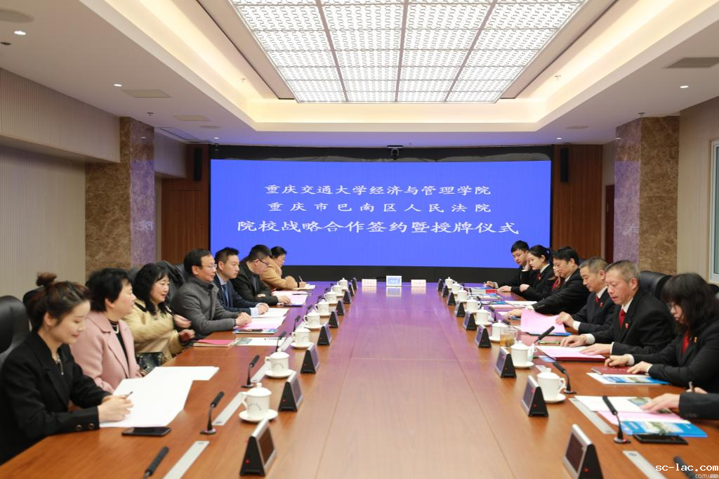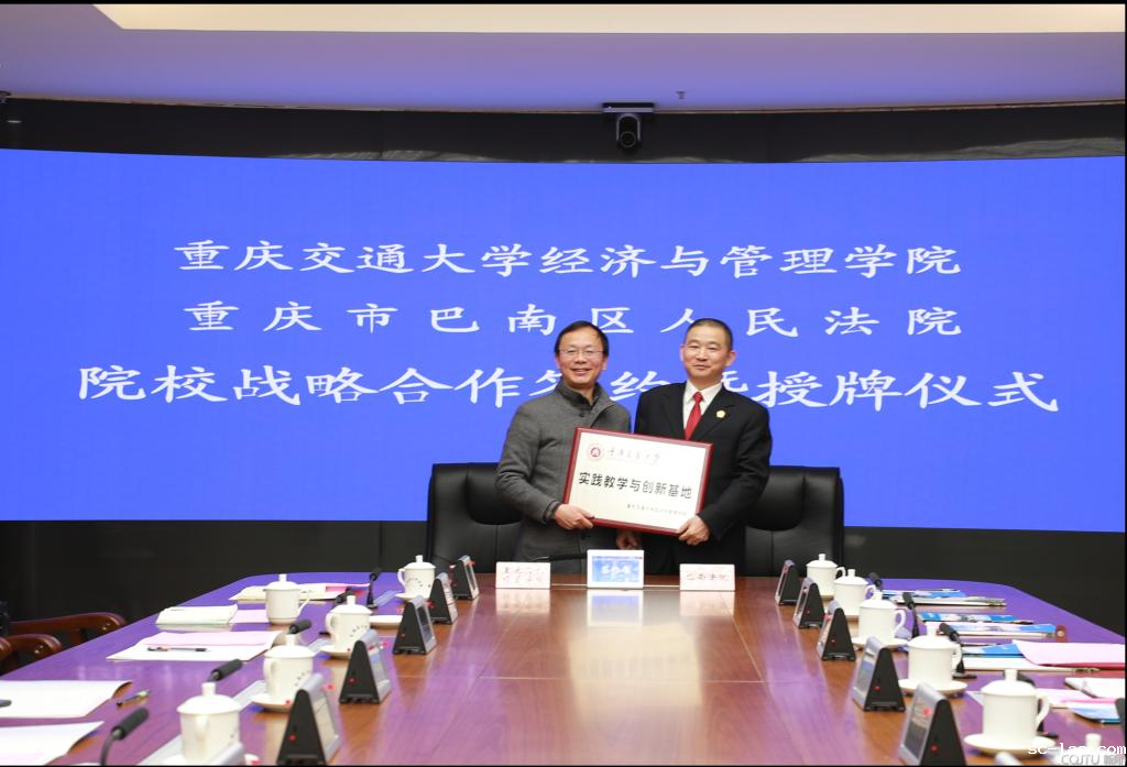 2022年2月25日上午,经济与管理学院党委书记魏铜铃带领知识产权系教师及辅导员代表赴重庆市巴南区人民法院(以下简称巴南法院)签订院校战略合作协议并举行教学创新实践基地授牌仪式,此次签约仪式由巴南法院党组成员、副院长吴德锋主持。