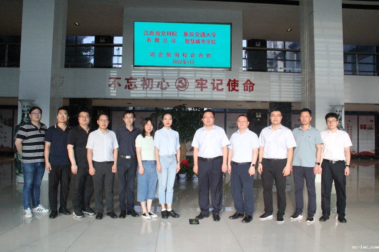 7月8日,智慧城市学院院长蔡晓禹带队前往江西省交通科学研究院有限公司开展访企拓岗、校企合作交流。学院党委副书记王净萍及相关负责人参加活动。江西省交通科学研究院有限公司总经理荣耀、副总经理糜江、科技发展部部长张恺、试验检测事业部部长孙洋、综合事物部部长何爱鹏、智慧交通事业部副部长伍伟斌等相关领导参与座谈交流。