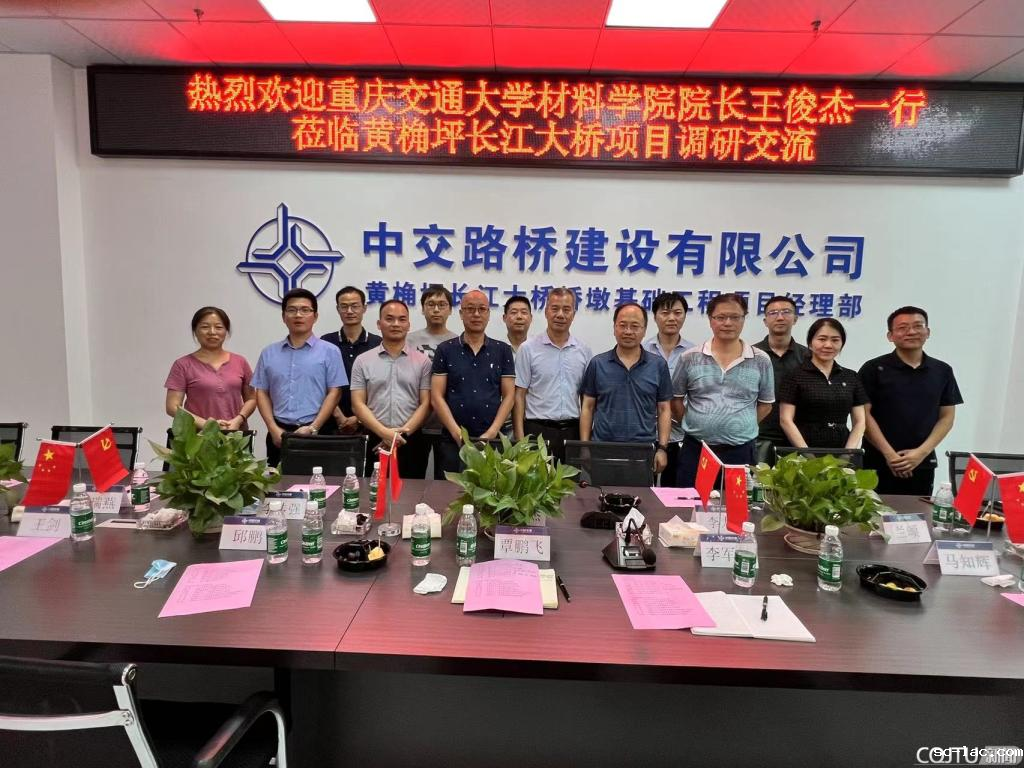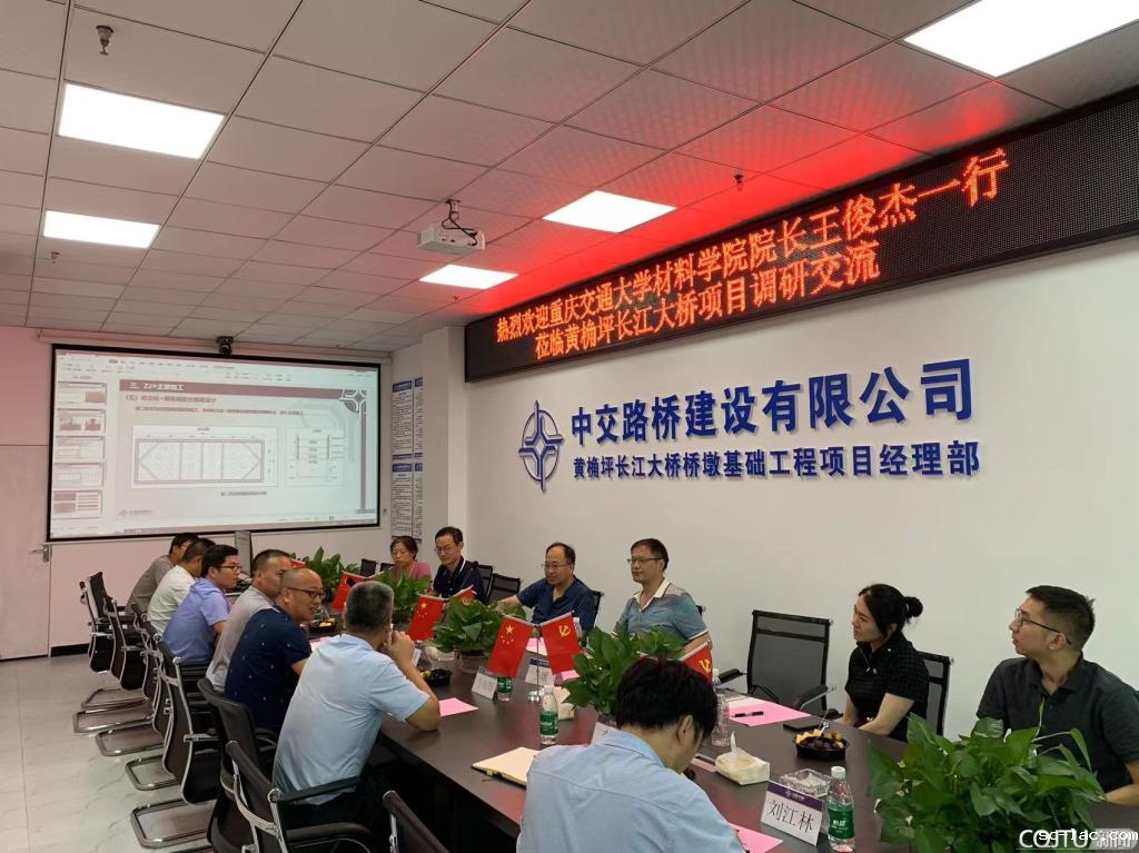 7月28日下午,材料科学与工程学院院长王俊杰一行七人走访了中交路桥华南工程有限公司黄桷坪长江大桥项目部。中交路桥华南公司广东东莞X232线1标项目经理李军华、重庆办事处副主任马知辉、黄桷坪长江大桥桥墩基础项目总工邱鹏、项目各部门负责人出席会议。副院长李力、系科室主任、部分材料系教师参加调研交流。