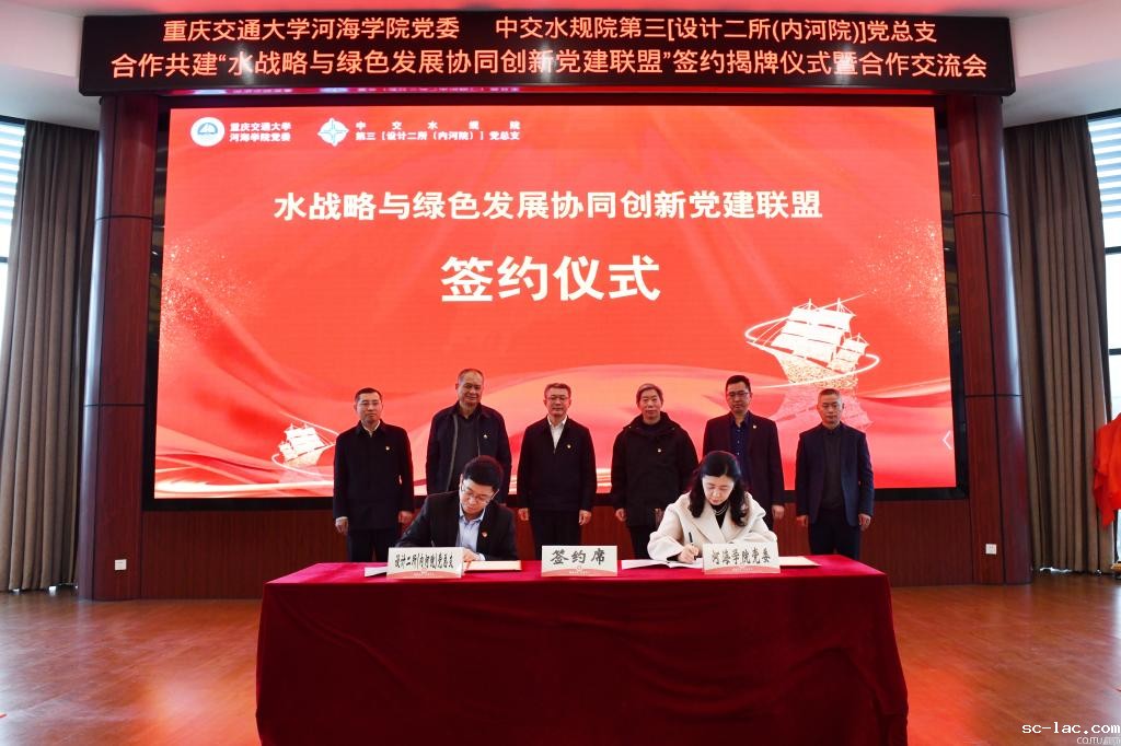 为贯彻落实新时代加强党的建设总要求,推动党建与事业发展深度融合,2023年2月15日下午,老伟德网上娱乐河海学院党委与中交水运规划设计院有限公司第三[设计二所(内河院)]党总支合作共建“水战略与绿色发展协同创新党建联盟”签约揭牌仪式暨校企合作交流会在科学城校区举行。