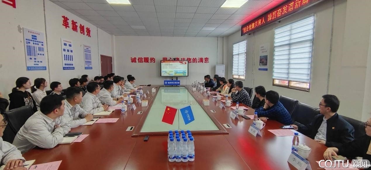 下午1点20分,校企双方在中交一航局重庆双江项目部会议室召开“校企党建共育人 踔厉奋发谱新篇”座谈交流会。重庆双江项目部项目经理郝增辉、党支部书记李祥华、项目总工高文焕,河海学院党委书记苗金燕、国家内河航道工程中心党支部书记陈明、本科生第三党支部书记杨玺、本科生第五党支部书记李丽以及双方党支部党员代表共40余人参加了座谈交流会。