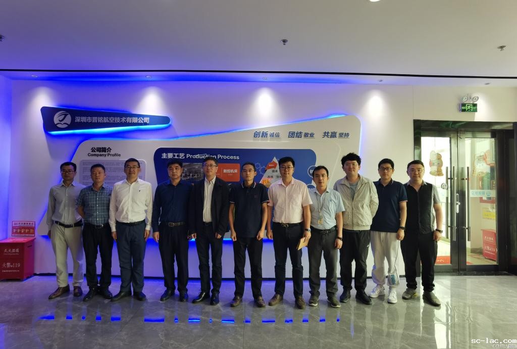 在深圳市晋铭航空技术有限公司,公司董事长罗亨松、总经理丁文勇对张铭一行的到访表示欢迎,并陪同参观了公司生产车间。在随后的交流中,罗亨松介绍了公司航空零部件加工工艺和新技术的研发方向。张铭介绍了航空学院及绿航院的人才培养、科学研究、成果转化和毕业生就业情况。与会双方对校企合作提出了建设性意见。