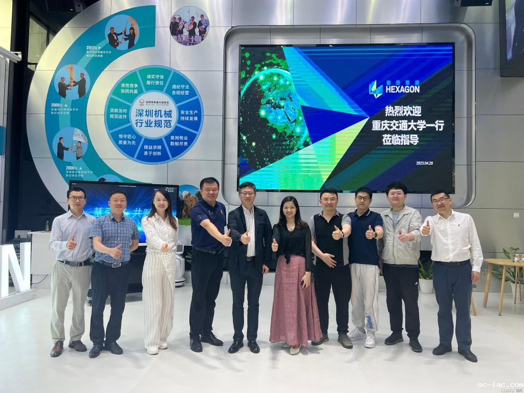 在海克斯康软件技术(青岛)有限公司深圳分公司,张铭一行与公司总经理曹思瑞深入交流了航空测量设备的虚拟仿真、应用场景及共建实训中心等校企合作内容,并在曹思瑞的陪同下,参观了航空精密测量仪器及应用测试。