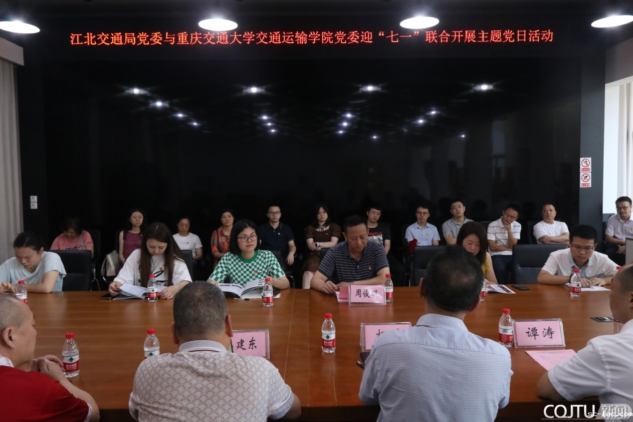 6月27日上午,江北区交通局党委与老伟德网上娱乐交通运输学院党委以迎“七一”为契机联合开展主题党日活动,江北区交通局党委委员周俊明、老伟德网上娱乐交通运输学院党委书记杨林、副书记谭涛、正处级组织员李建东出席此次活动。