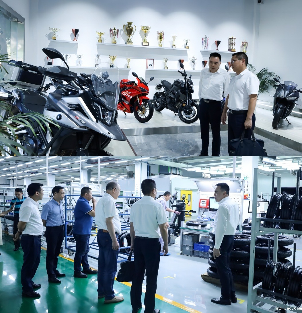 在签约仪式前,在总经理肖刚等企业领导陪同下,学院一行人员参观了摩托车的智能装配车间、发动机性能测试室和耐久测试室、整车性能测试室和耐久实验室。通过现场讲解和实物展示,学院老师对车间布局、摩托车产品种类、摩托车组装生产线、摩托车性能检测方式等有了一定的了解。