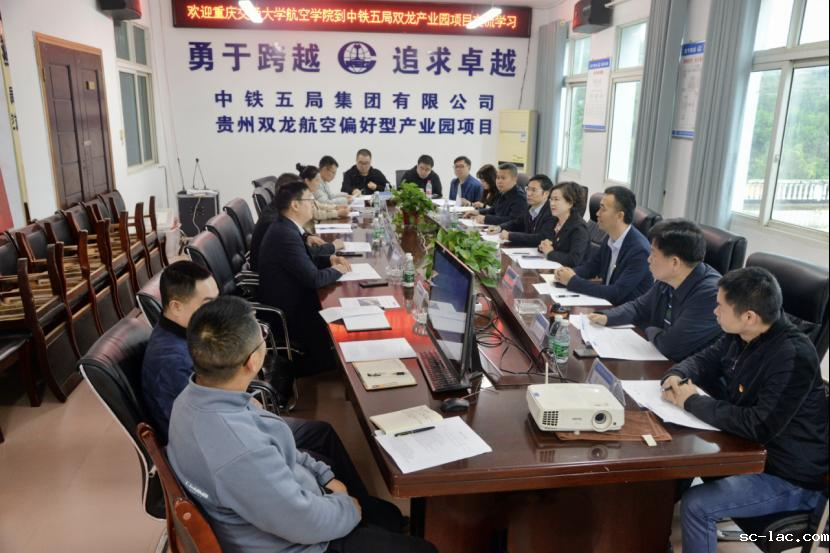 10月14日,航空学院教工党支部与中铁五局集团贵州公司贵州双龙航空偏好型产业园二期项目党支部(简称“二期项目党支部”)共同开展党的二十大精神学习和业务合作交流。航空学院党委书记舒琳,纪委书记、组织员韩正清,党委副书记杨登陆,教工党支部书记邓涛,二期项目经理袁燎,党支部书记石培荣,总工程师杨仕堂及双方党员代表参加本次活动。