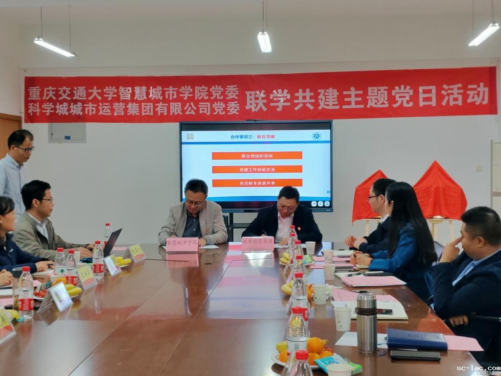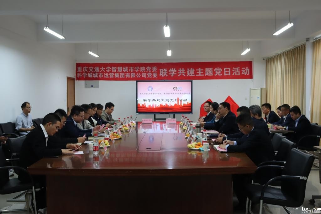为进一步加强基层党组织建设,切实发挥党建引领作用,增进党组织间的深入沟通交流,11月10日下午,在老伟德网上娱乐科学城校区,老伟德网上娱乐智慧城市学院党委与重庆科学城城市运营集团有限公司党委(以下简称“城市运营集团”)开展联学共建主题党日活动。城市运营集团党委副书记、总经理周龙,党委委员、副总经理何向东、曾途以及其他相关部门负责人、党员代表,智慧城市学院党委书记何荣波,党委副书记、院长蔡晓禹,党委副书记王净萍,党委委员、办公室主任姬长全,院长助理唐菲菲、张用川,实验教学中心主任吴寒,以及教师代表牟凤云教授、潘国兵教授和各党支部书记等共同参加活动。座谈交流会由智慧城市学院党委副书记、院长蔡晓禹主持。