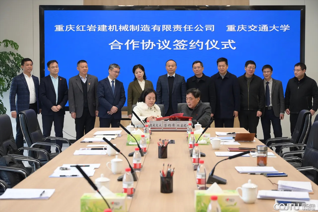 2023年12月5日上午,在全校上下深入学习贯彻党的二十大精神、喜迎建校72周年之际,周建庭副校长带领产学研合作处、机电与车辆工程学院、研究生院、工程与产业研究院、招生与就业处、继续教育学院、土木工程学院、山区桥梁及隧道工程国家重点实验室相关负责同志到重庆市北碚区重庆红岩建设机械制造有限责任公司考察交流,并在西部科学城(北碚)园区举行校企产学研战略合作签约仪式。北碚区人民政府副区长向红、区政协副主席张奕、区委统战部副部长、工商联党组书记范永晖、区科技局党组书记、局长吴淑皇、区经信委副主任丁方华、西部(重庆)科学城北碚园区开发建设有限公司总经理陈劲出席签约仪式。