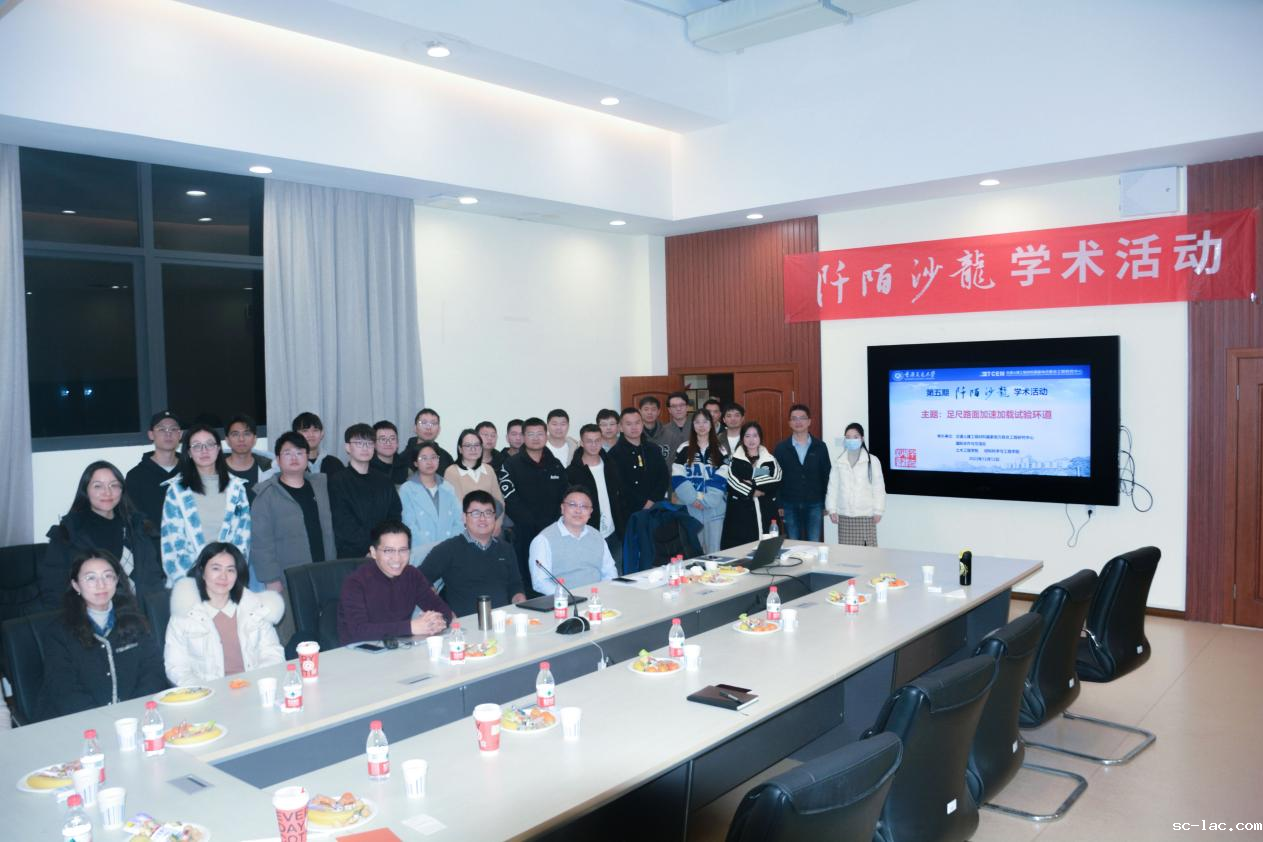 2023年12月12日下午,交通土建工程材料国家地方联合工程研究中心(以下简称“中心”)、国际合作与交流处、材料科学与工程学院、土木工程学院共同举办了以足尺路面加速加载试验环道为主题的第五期“阡陌沙龙”学术活动。本期沙龙邀请了美国国家沥青技术中心(NCAT)陈晨研究员来校交流,中心常务副主任朱洪洲教授、材料科学与工程学院副院长郭鹏教授,以及相关学科的教师和研究生参加了本期沙龙。沙龙由材料科学与工程学院高俊锋副教授主持。