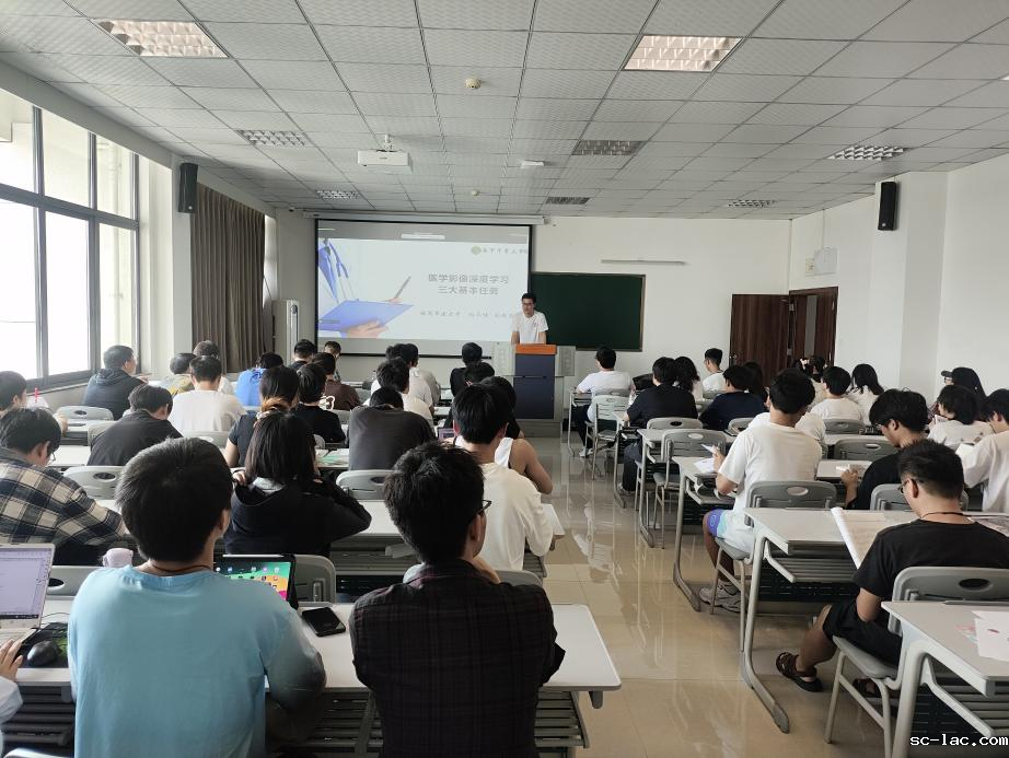 交流环节,与会师生纷纷踊跃提问,粘教授为大家耐心解答了相关问题。粘教授的报告不仅使学生们了解到深度学习在医学影像中的应用,同时引导大家将所学知识应用于实际,以求为医学领域的发展添砖加瓦。