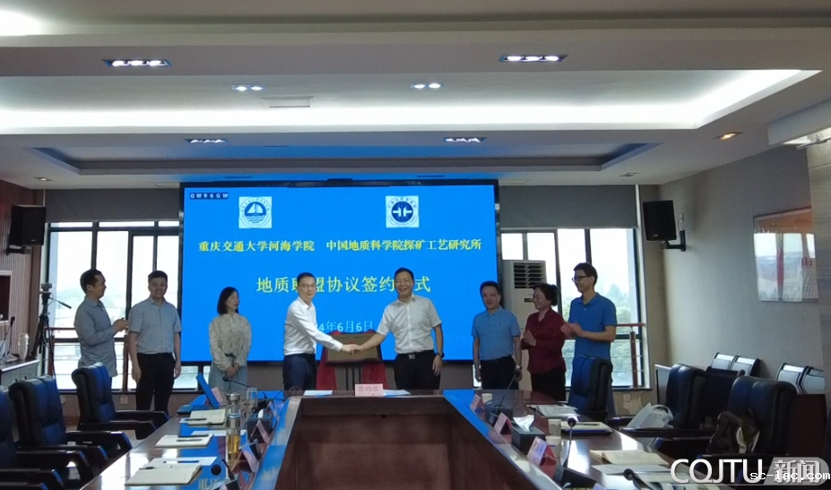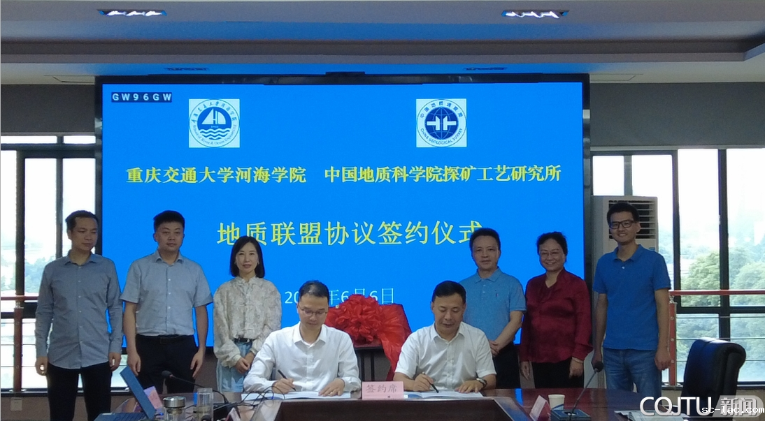 在与会人员见证下,探矿工艺所党委书记蔡有良与河海学院党委书记叶四桥代表双方共同签署了“地质安全战略与绿色发展协同创新党建联盟”协议书,并举行党建联盟揭牌仪式。