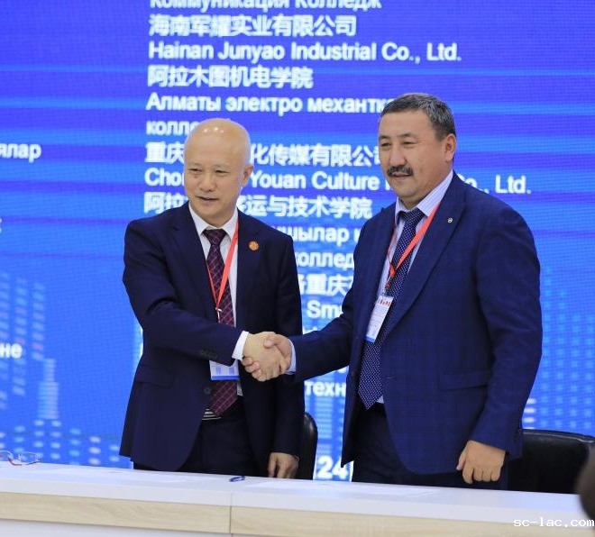 本次论坛还举行了联盟理事会。理事会上,理事长黄承锋副校长宣读了“关于重庆与中欧班列沿线国家产学研合作联盟更名为陆海通国际产学研合作联盟的决议”和“关于同意阿拉木图国立理工职业学院、重庆第二师范学院等25家单位加入联盟的决议。”随后举行了新成员加入联盟的签约仪式,黄承锋副校长代表联盟与新成员签署协议,阿拉木图交通与通信学院、阿拉木图机电学院、阿拉木图客运与技术学院、阿拉木图建筑技术学院、重庆青于蓝教育科技有限公司等25家新成员单位依次签约。