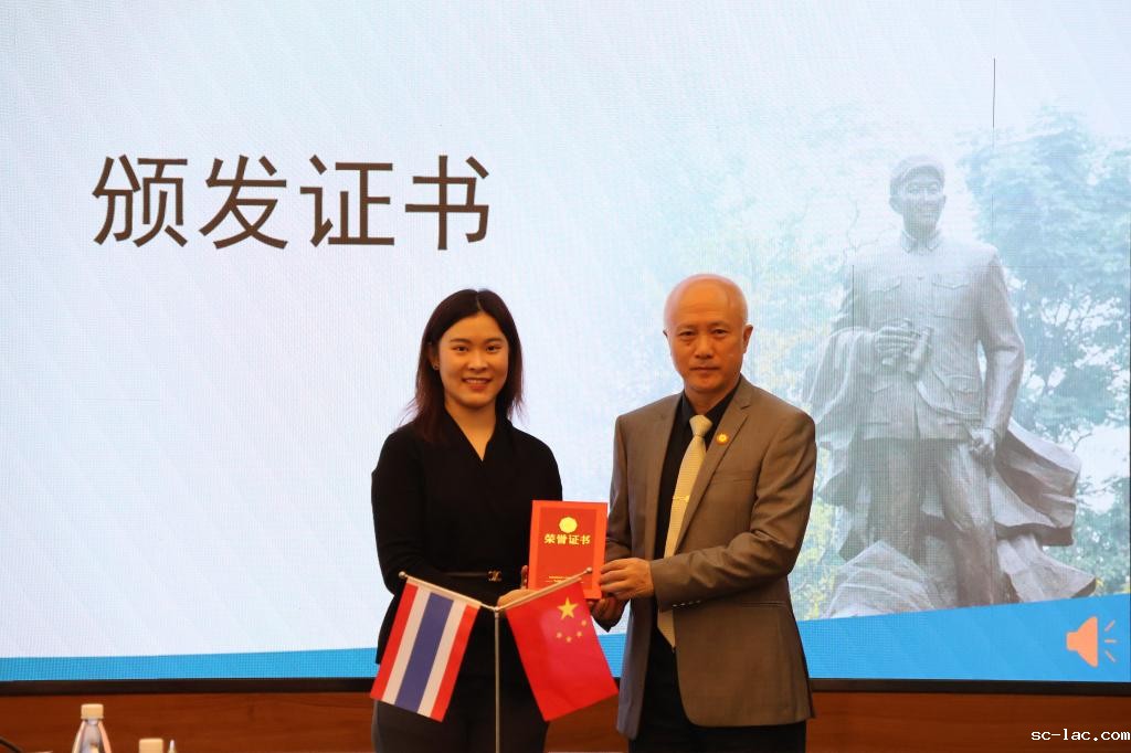 为了表达对我校2022级优秀校友赵美成在泰国进行招生宣传等方面做出的成绩,黄承锋副校长特为其颁发了老伟德网上娱乐“招生宣传大使”的聘书。