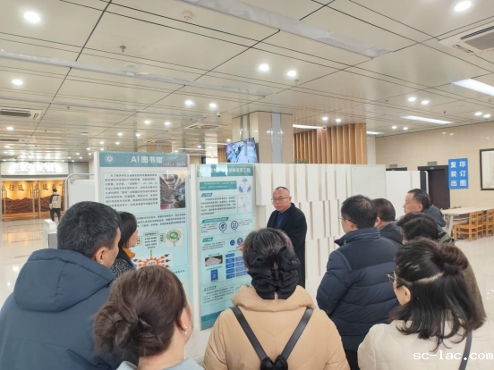 石超峰馆长陪同来宾参观了明德书斋、校史馆、AI展架区、数字人等特色区域,并分享了我校图书馆在人工智能建设方面的实践经验和思考。石馆长详细介绍了通过建立AI文献交互坊来满足学生和科研人员的个性化服务需求,并通过智慧服务生态支持教学和科研工作的工作思路,同时重点介绍了图书馆正在积极推进的创新示范工程,该工程包括一个系统、三个神器和多样化空间的建设,旨在通过数智赋能,提升服务效率和质量,为读者提供更便捷、个性化的服务体验。来宾对我校图书馆在AI建设和创新示范工程方面的探索表示了极大的兴趣和赞赏。