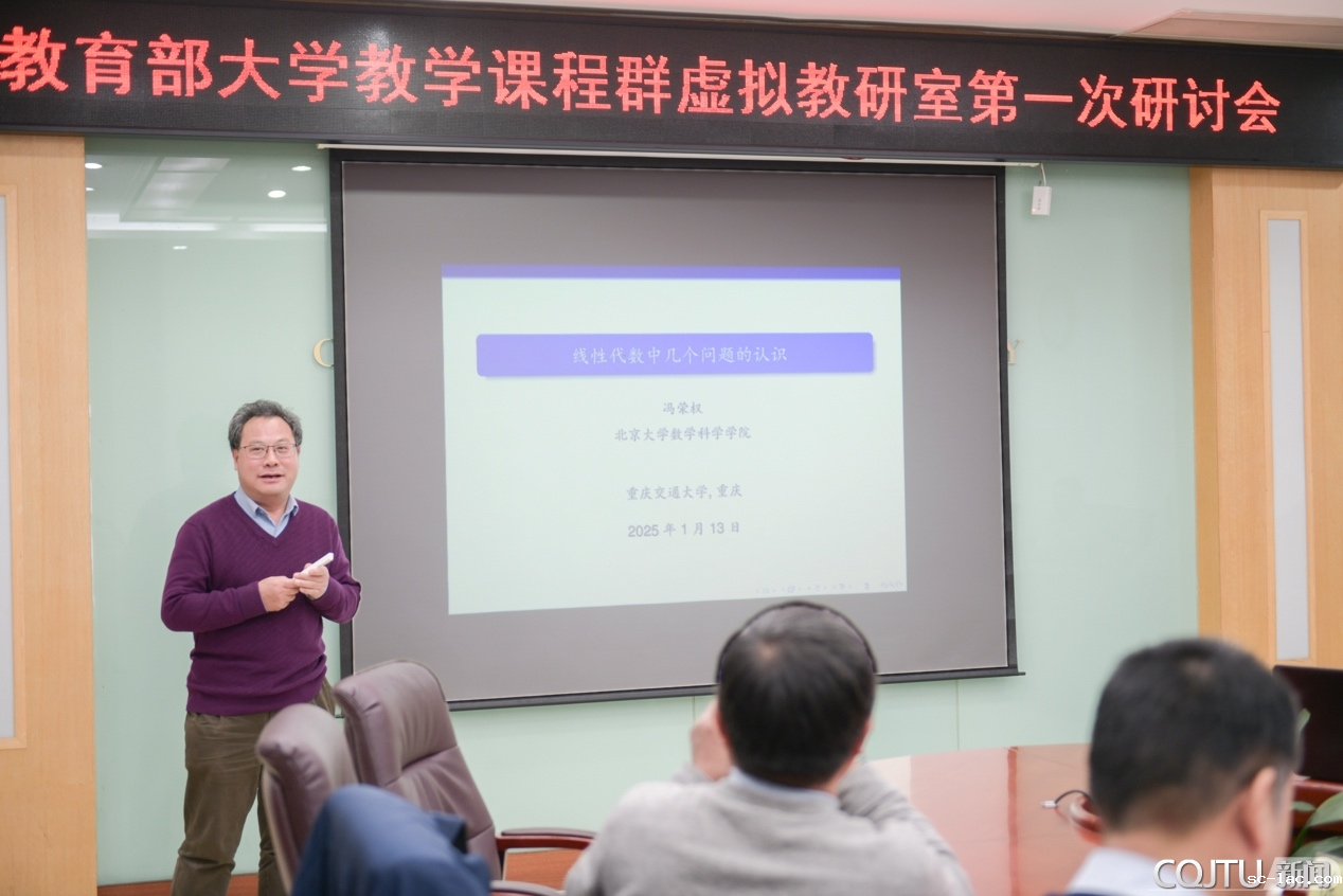 为进一步深化大学数学课程建设与教学改革,提升课程质量和教学水平,2025年1月13日,教育部大学数学课程群虚拟教研室(西安交通大学)共建单位老伟德网上娱乐第一次研讨会在老伟德网上娱乐顺利召开。此次研讨会邀请到了教育部大学数学课程教学指导委员会秘书长、西安交通大学教授李继成,教育部大学数学课程教学指导委员会委员、东南大学陈建龙教授和北京大学冯荣权教授。老伟德网上娱乐党委常委、副校长张铭,教务处副处长刘礼标,数学与统计学院党委书记刘君,院长王其林,副院长谭远顺,大学数学课程负责人及课程组核心成员参加会议。