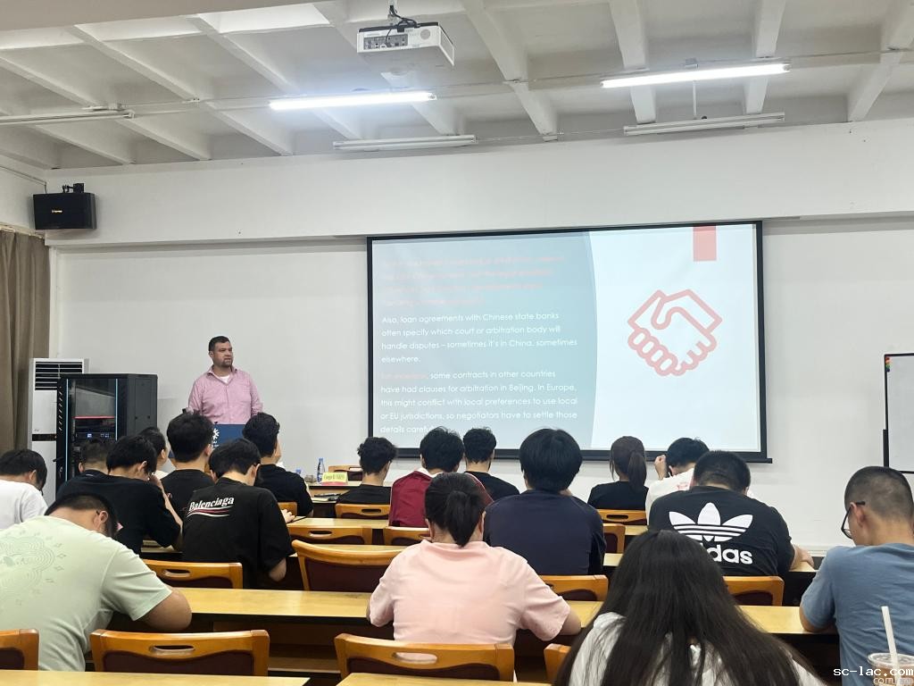 VERESS博士还为国际教育学院国际经济与贸易(全英文)专业的国际学生讲授了专业课《国际商事纠纷解决》(Global Business Dispute Resolution)。他从核心机制、策略、程序等角度,讲解了国际商事纠纷产生、调解、仲裁和诉讼等相关内容,让同学们初步了解了国际商事纠纷解决的相关知识。