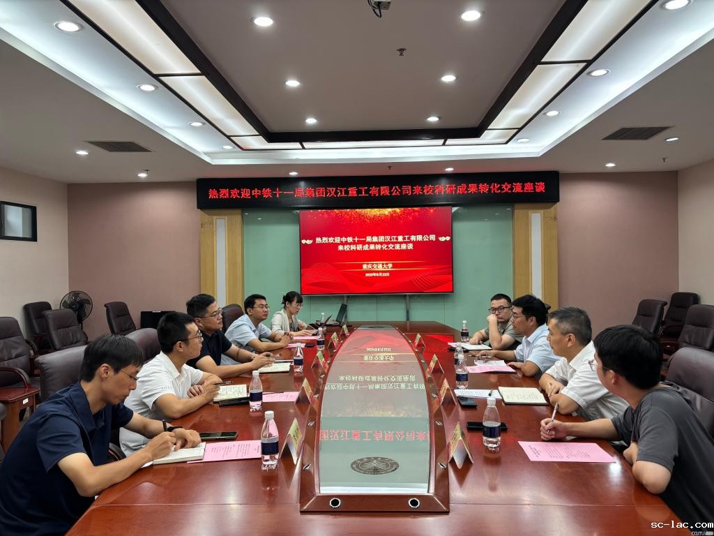 8月22日下午,中铁十一局集团汉江重工有限公司(以下简称“汉江重工”)副总经理张光明一行到访我校开展成果转化交流。校党委常委、副校长董绍江、工程产业院副院长(主持工作)孙世政、科技处副处长陈兆玮以及机电学院专家教授代表共同出席座谈交流会。会议由孙世政主持。