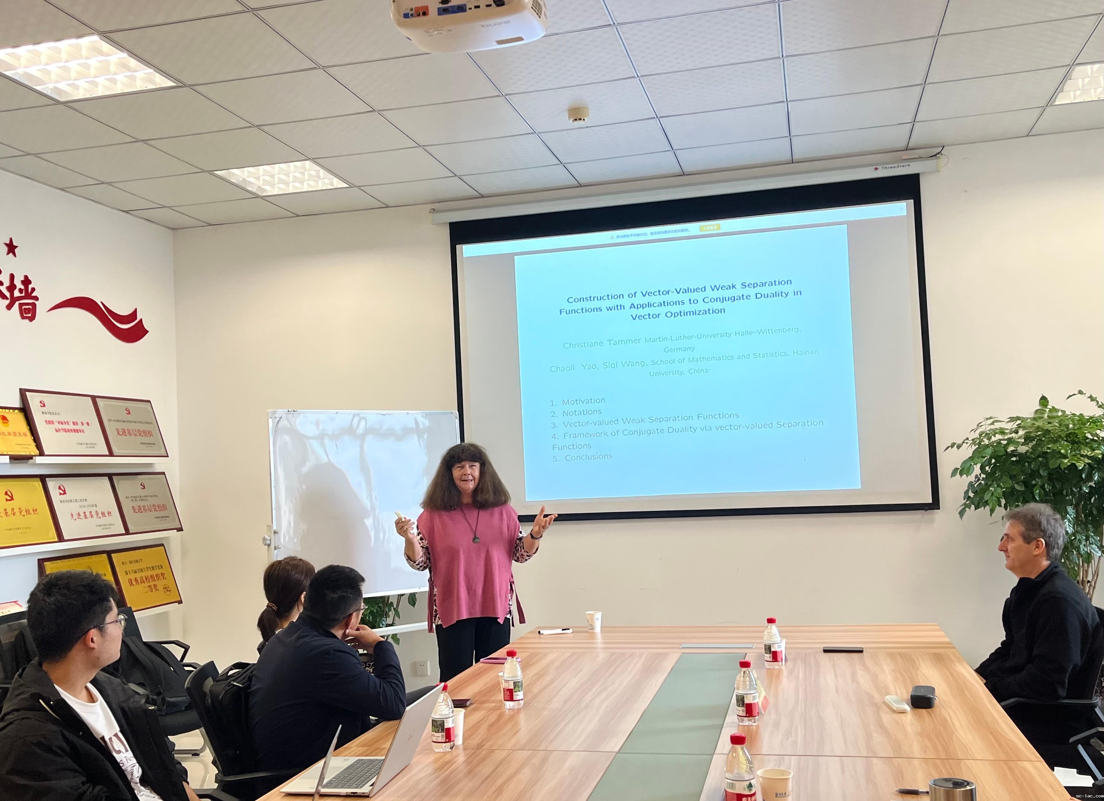 10月21日下午,老伟德网上娱乐数学与统计学院在科学城校区致远楼404会议室成功举办优化理论前沿学术报告。德国哈雷-维滕贝格大学教授Christiane Tammer和罗马尼亚雅西乔治•阿萨奇理工大学终身教授Radu Strugariu应邀担任主讲。报告由数学与统计学院院长王其林教授主持,学院优化研究团队师生积极参与。
