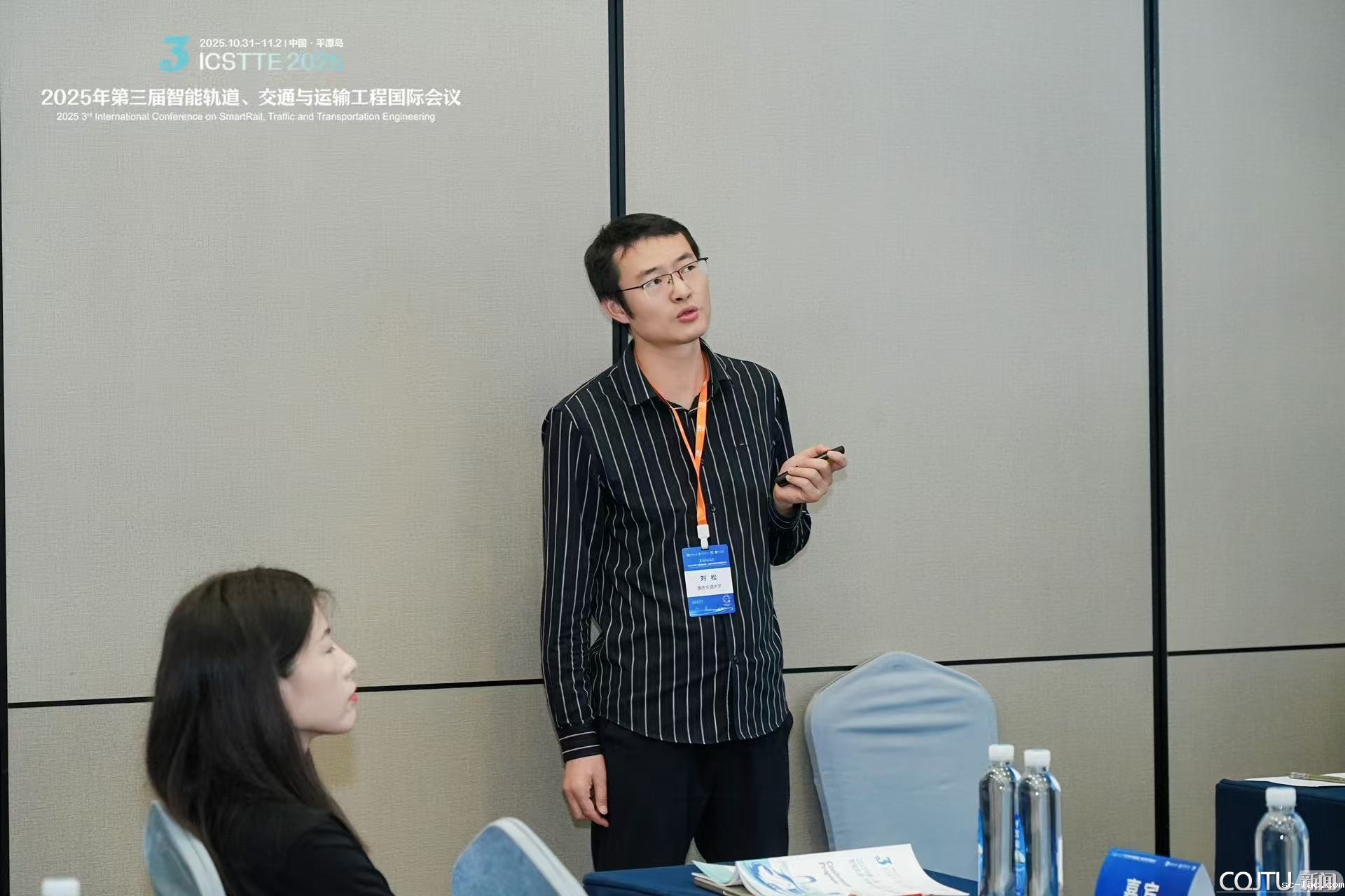 机电与车辆工程学院牵头组织“轨道交通车辆-轨道-桥梁系统结构设计、动力学、强度与控制关键技术”分会场,蒋咏志副教授作“Dynamic response and stability assessment of suspended monorail in cross wind curve condition” 特邀报告,深入解析跨风曲线工况下悬挂式单轨的动态响应与稳定性,为轨道交通安全运营提供关键技术参考,引发与会专家的热烈讨论。交通运输学院综合运输系统智能优化研究所副所长刘松博士后受邀在"新一代信息技术驱动的多式联运创新范式"分会场作“Optimization of Reliable Routes for Multimodal Transport of Emergency Supplies Under Dual Uncertainty”特邀报告,针对双重不确定性下应急物资多式联运可靠路径优化问题提出创新解决方案,为多式联运领域技术突破提供新思路。两位青年学者的报告体现了我校以“交通+”为核心的学科交叉特色。