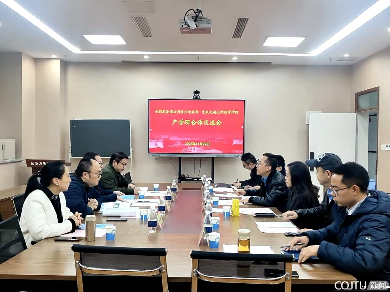 2025年11月27日,中国铁路成都局集团有限公司重庆电务段党委书记崔忠勇、总工程师龚小江一行到访经管学院,开展产学研合作交流。经济与管理学院党委书记尹作发、党委副书记吉孟君以及专家教授代表参加座谈交流。