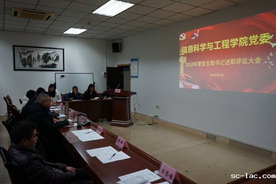 1月9日下午14:30,信息科学与工程学院党委2018年度党支部书记抓基层党建述职评议考核会议在语音楼9楼学院会议室顺利召开。信息科学与工程学院党委书记曹建秋、正处级组织员罗宪、党委副书记和纪委书记潘江及其他党委委员、工会教代会代表、普通党员代表、群众代表和各党支书书记、副书记、支部委员参加了本次会议。党委书记曹建秋主持会议。