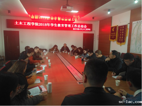 2019年1月16日,土木工程学院土木工程学院2018年度学生教育管理工作总结会在学院90207会议室举行,学院党委副书记舒琳,学院党委委员、团委书记谭涛,学院学工办副主任王辉以及全体辅导员,共25人参加。学院学工办副主任王辉主持会议。
