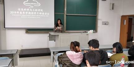 2019年3月7日,信息科学与工程学院双福团总支2019年春季学期团学干部座谈会在A01410举行。学院党委副书记潘江,学院双福团总支书记、2018级辅导员刘洋及双福团总支全体学生干部出席了座谈交流。